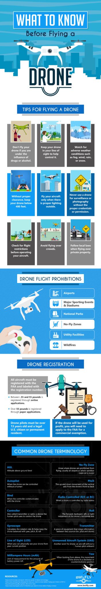What to know before flying a drone infographic provided by BWI Fly at https://bwifly.com/resources/know-flying-drone/