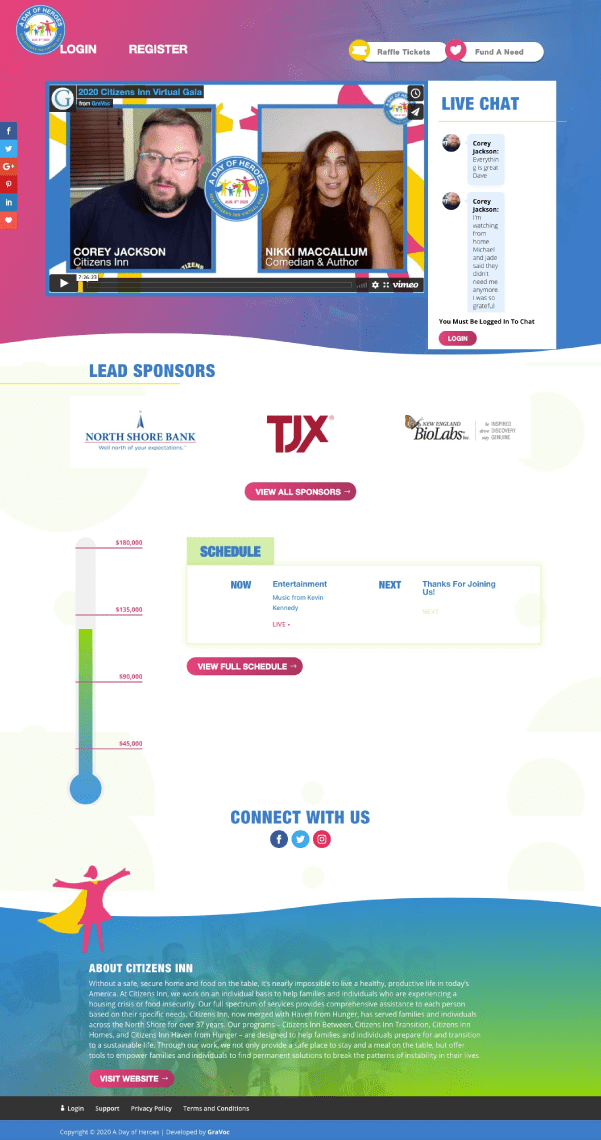 On August 8th, 2020 Citizens Inn virtually held their annual gala in lieu of having an in-person event as a result of COVID-19 and raised $115,000 through our Virtual Fundraising Platform!