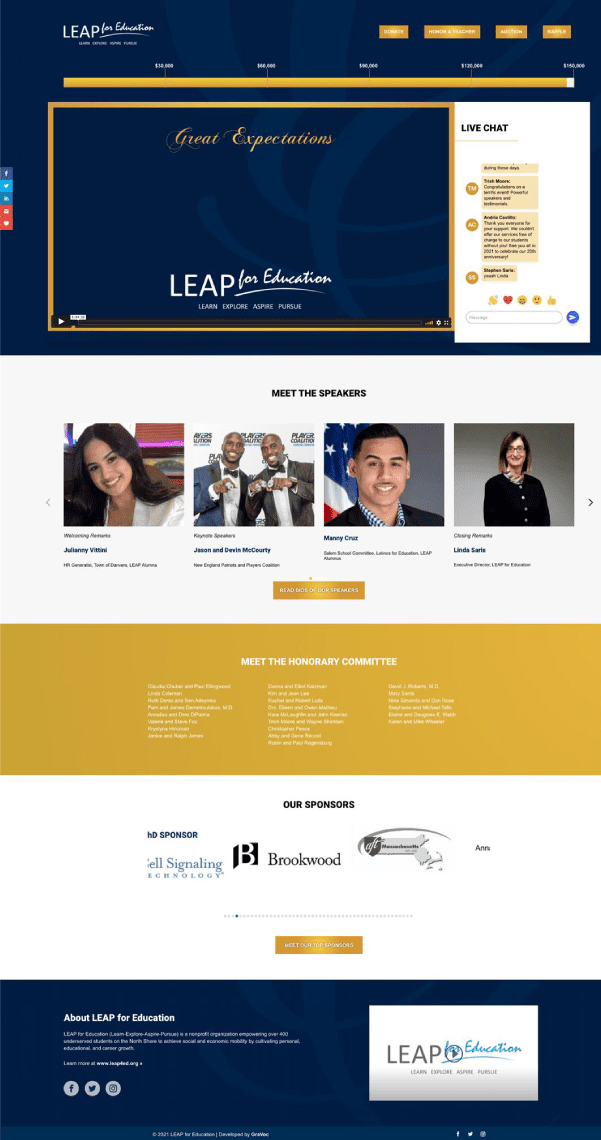 On April 8th, 2021, our team helped LEAP for Education raise more than $140,000 through their virtual online gala, Great Expectations.