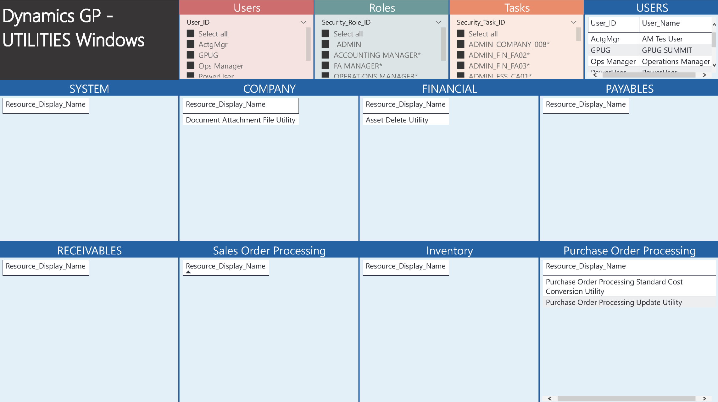 The easiest and most powerful visual way to understand Dynamics GP Security. 22 dashboards of Dynamics GP Security Analysis Bliss!