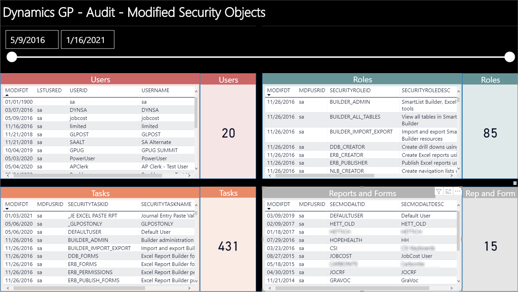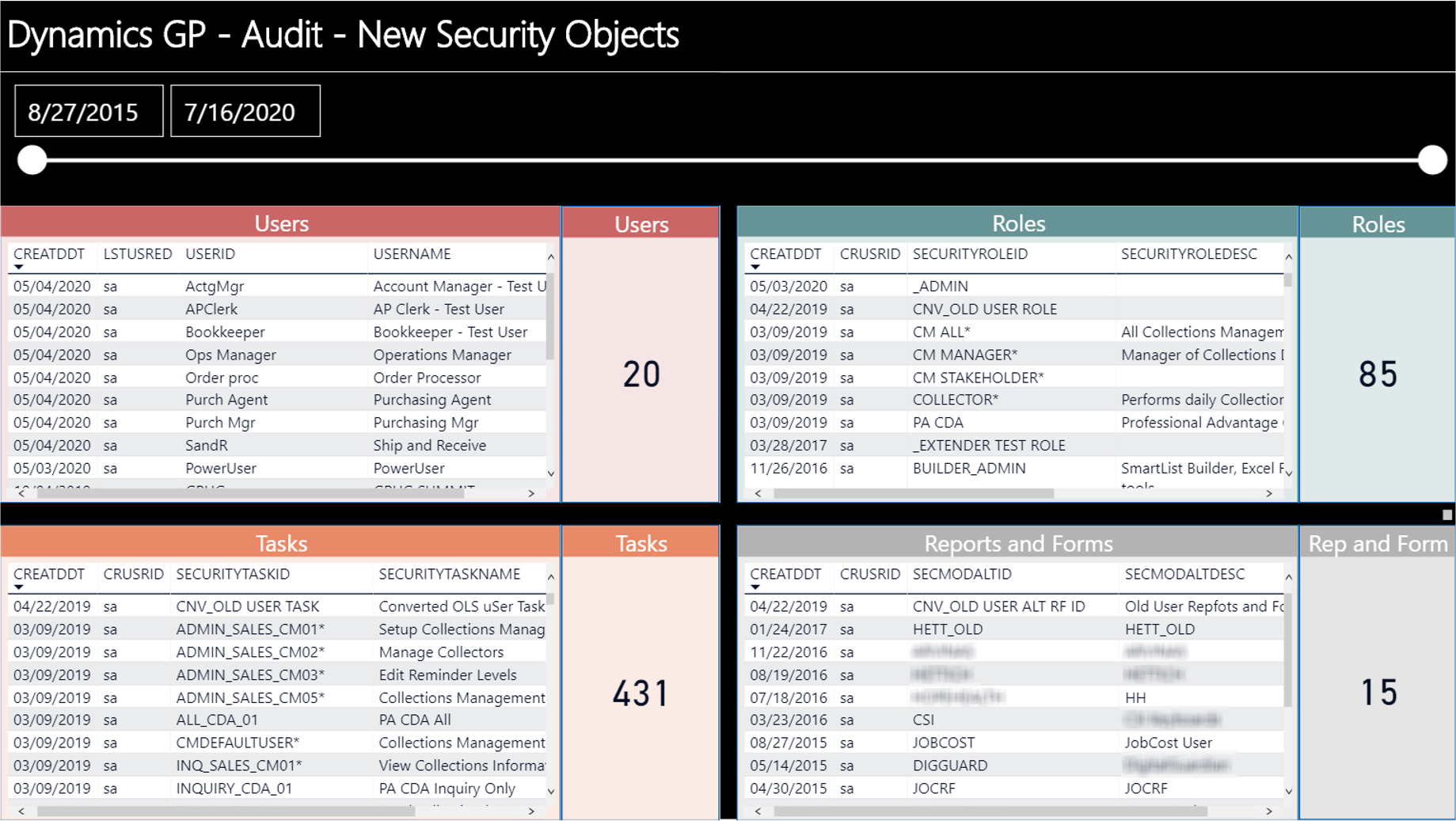 Explore 22 dashboards of Dynamics GP security analysis bliss!