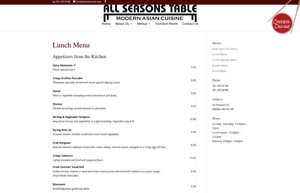 restaurant website design & development services.