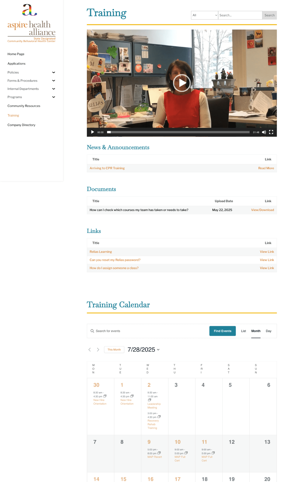 user training and website support